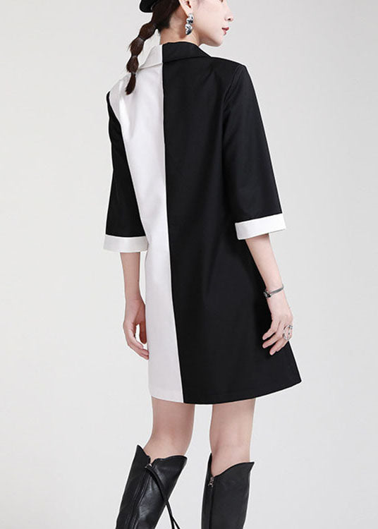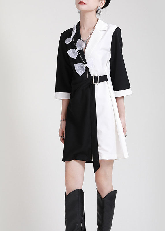 DIY Schwarz Weiß Patchwork Peter Pan Kragen Schleife Schärpen Herbst Kleid Halbe Hülse