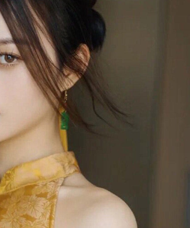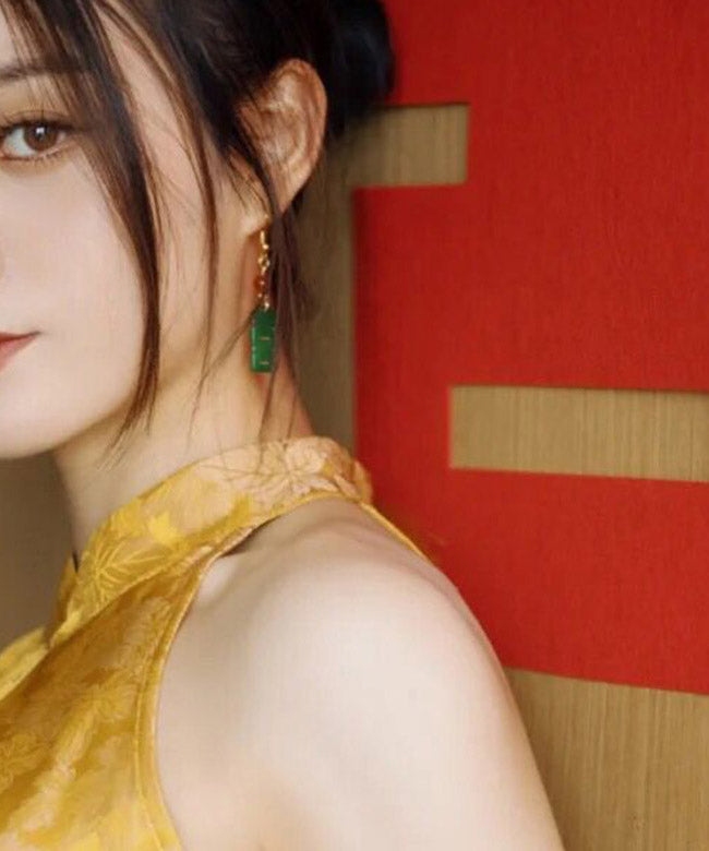 DIY Dry Green Jade Agate Graphic Drop Earrings