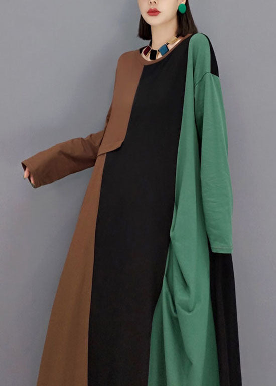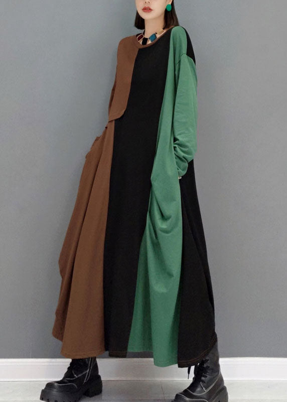 DIY Grün O-Ausschnitt Taschen Asymmetrische Patchwork Lange Kleider Frühling