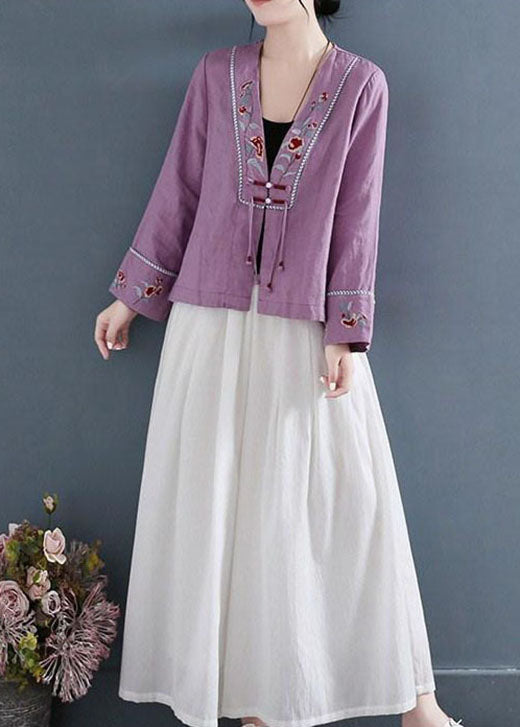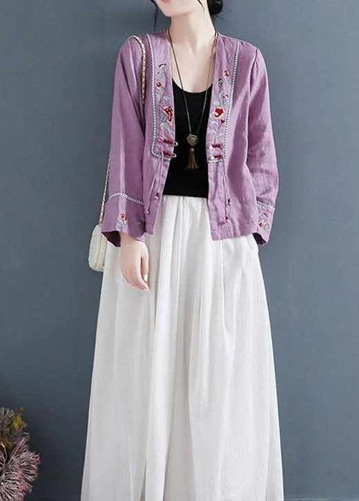 DIY Lila V-Ausschnitt Bestickte Patchwork Shirts Langarm