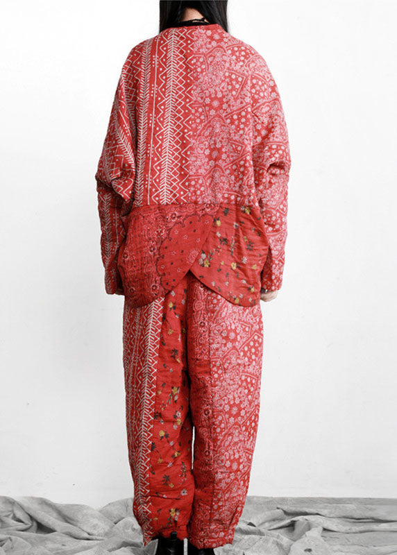 DIY Roter Druck Patchwork asymmetrisches Design Herbst Zweiteiler Set