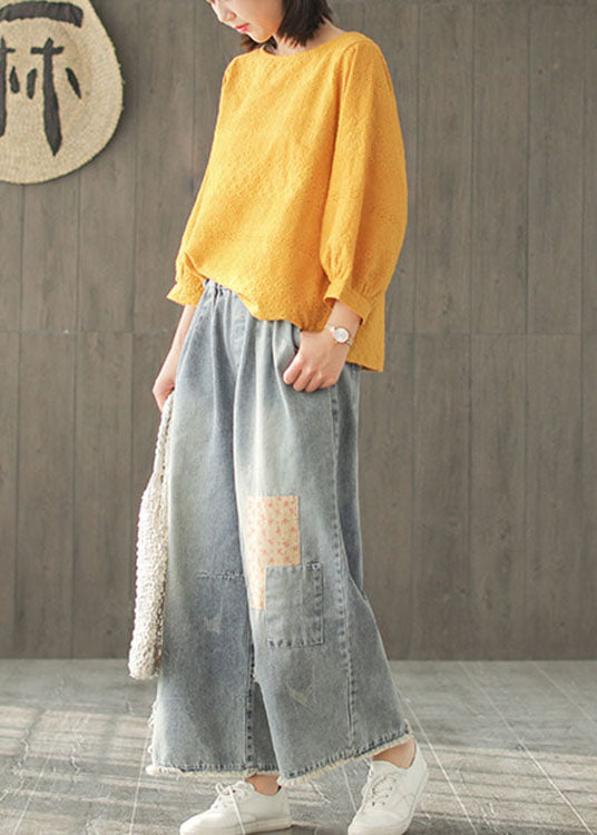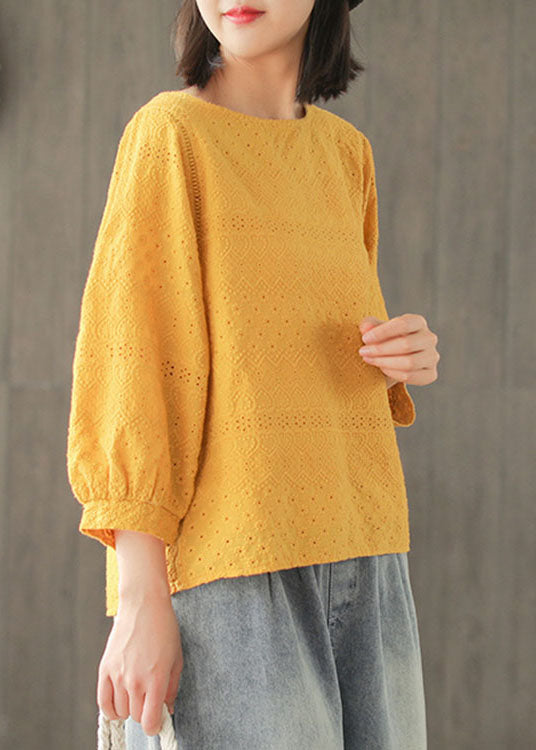DIY Gelbe Mode Ausgehöhlte Bestickte Langarm-Oberteile Für Den Herbst