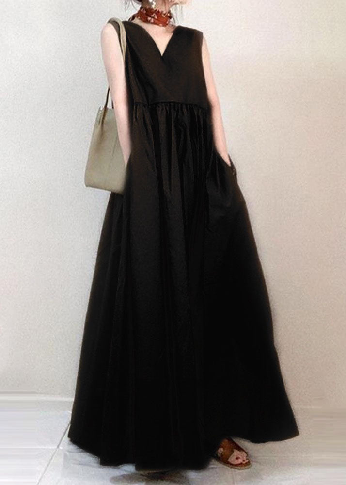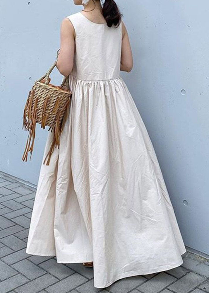 Elegantes beiges, ärmelloses Urlaubskleid aus Baumwolle mit V-Ausschnitt und Patchwork