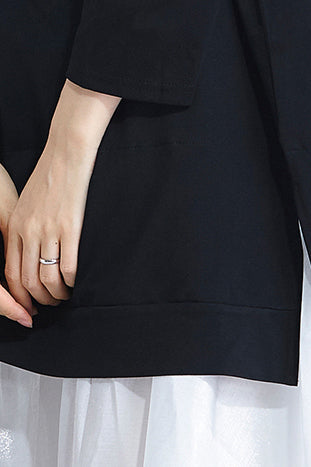 Elegante schwarze Baumwoll-Patchwork-Chiffon-Kleidung Metropolitan Museum Ideen O-Ausschnitt Kaftan Sommerkleid