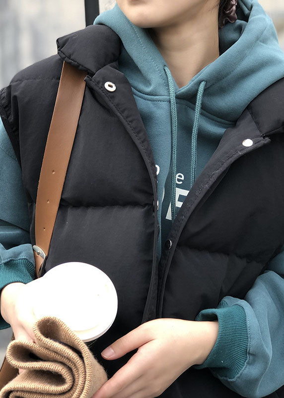 Elegante schwarze Taschen Knopf Patchwork Winter warme ärmellose Pufferweste