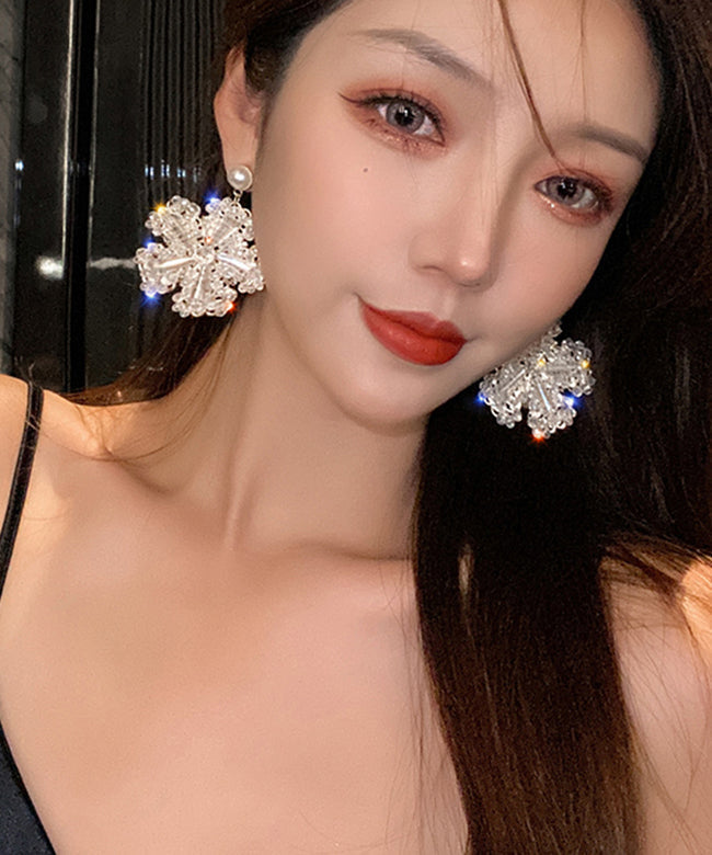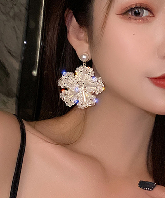 Elegant Gold Sterling Silver Floral Zircon Pearl Coloured Glaze Hoop Earrings