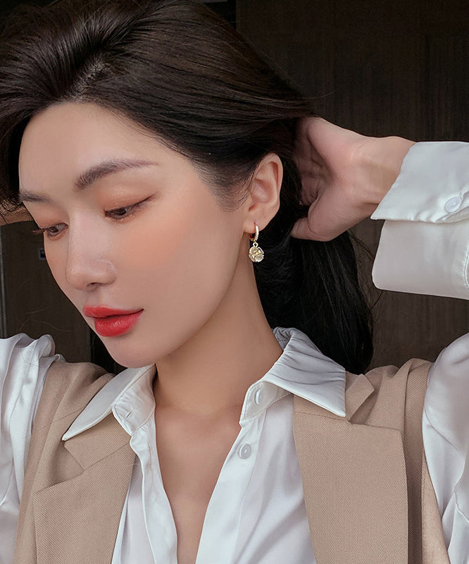 Elegant Gold Sterling Silver Overgild Zircon Cat's Eye Stone Drop Earrings