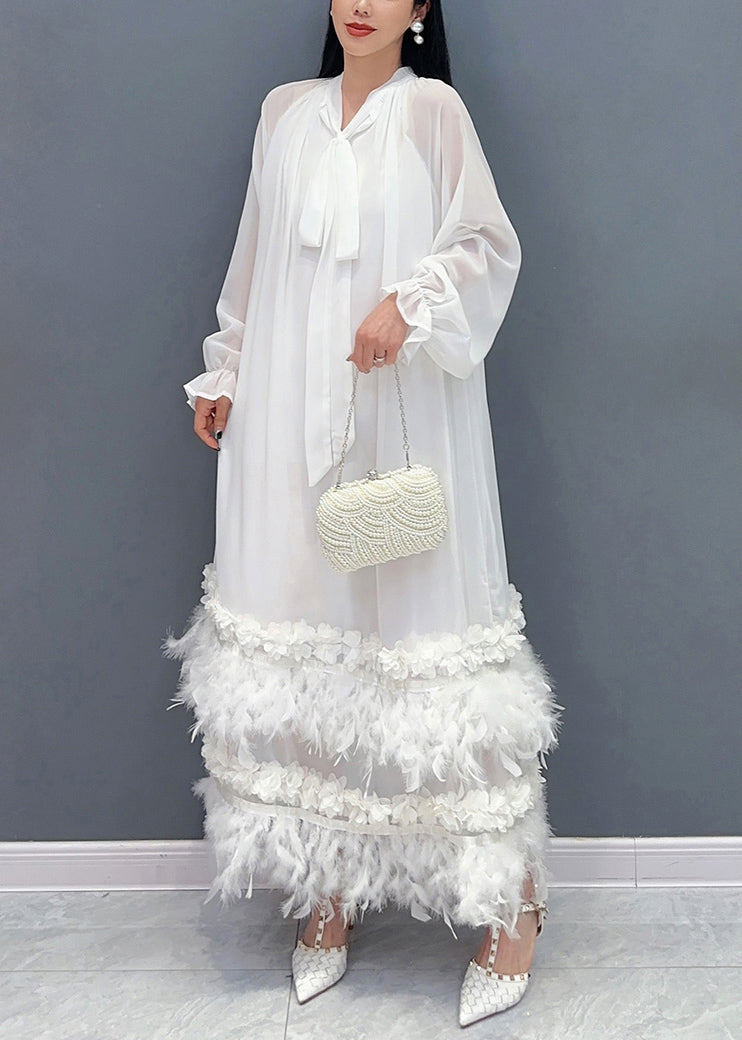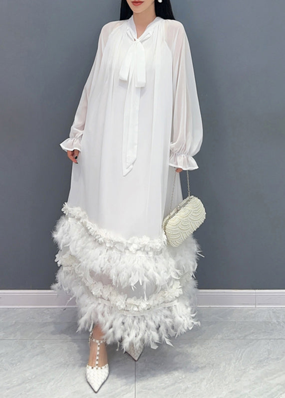 Elegant Green Bow Patchwork Floral Tassel Chiffon Long Dresses Fall