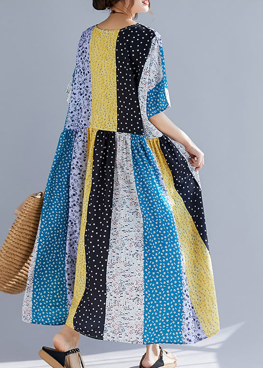 Elegante mehrfarbige Baumwollkleider in Übergröße Nähen von O-Ausschnitt-Patchwork-Kaftan-Sommerkleidern