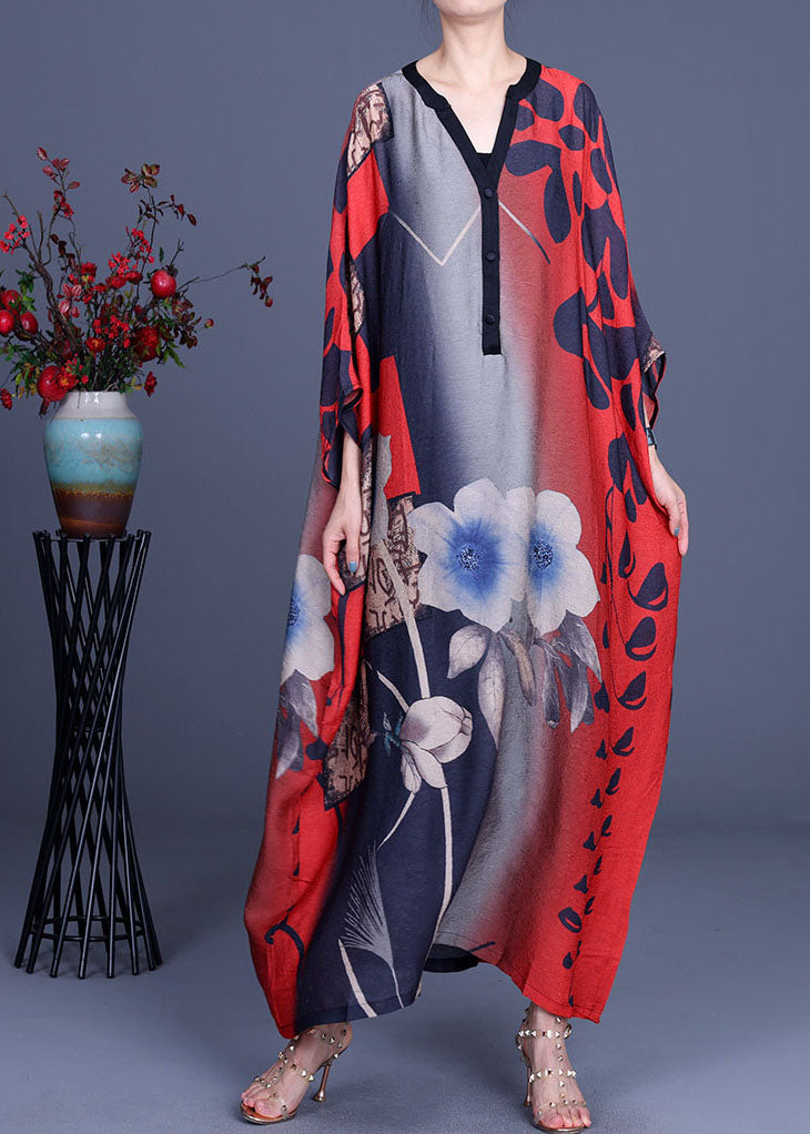 Elegante rote Knopf Fledermausflügelärmel Herbst Urlaubskleider