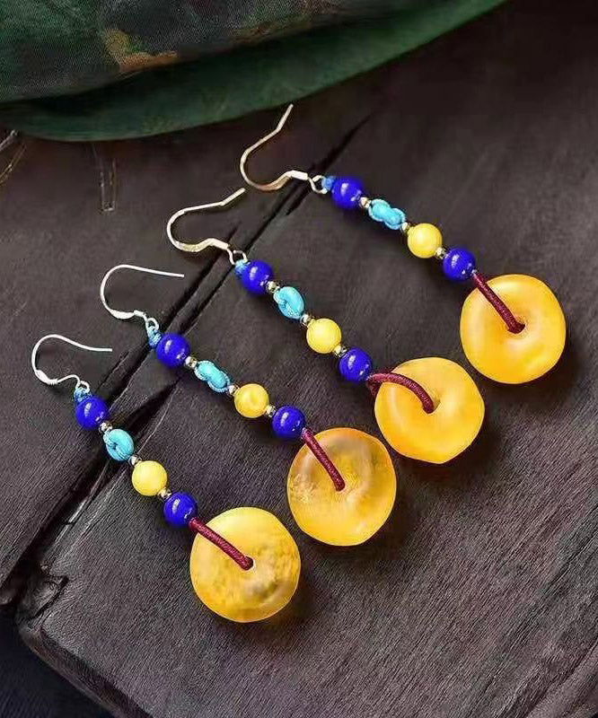 Elegant Red Sterling Silver Resin Beeswax Safety Buckle Drop Earrings