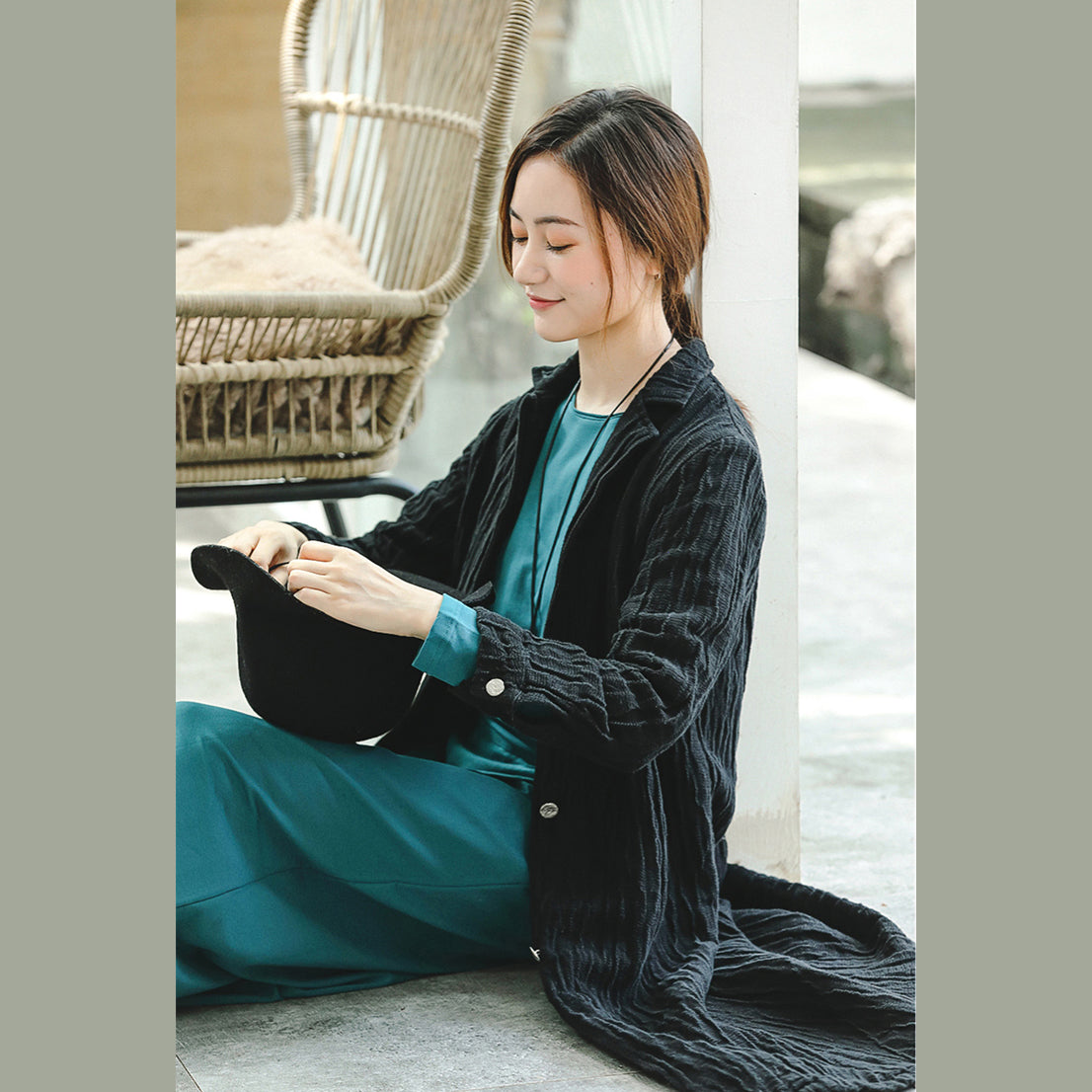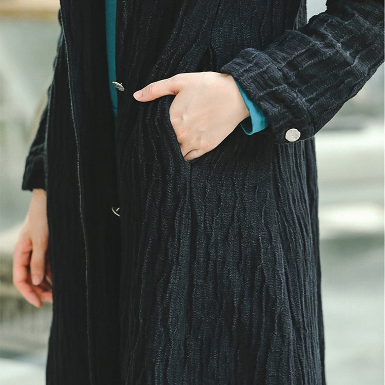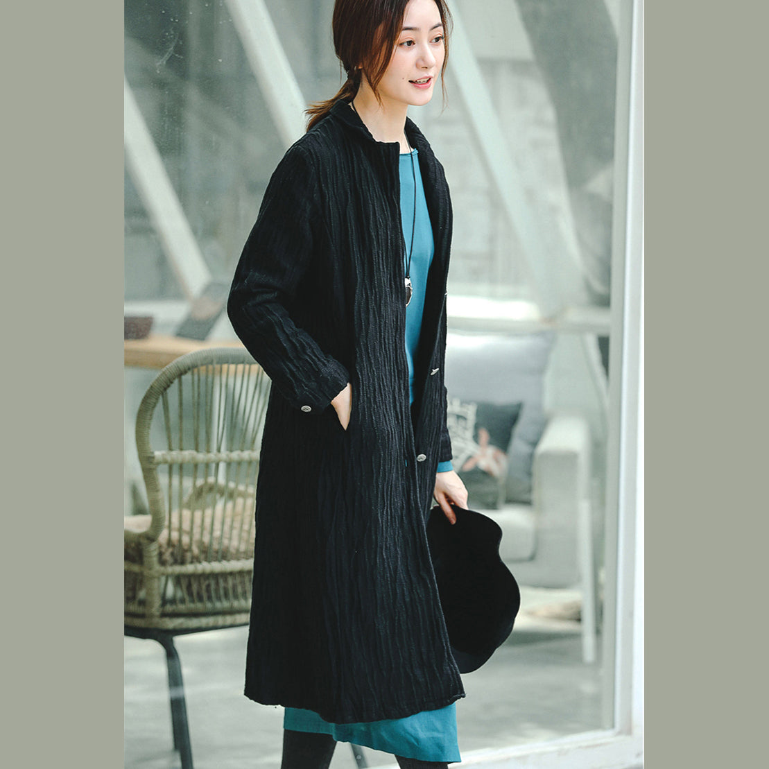 Mode schwarzer Mantel trendy plus Größe Kerbtaschen Wintermantel Boutique Langarmmantel