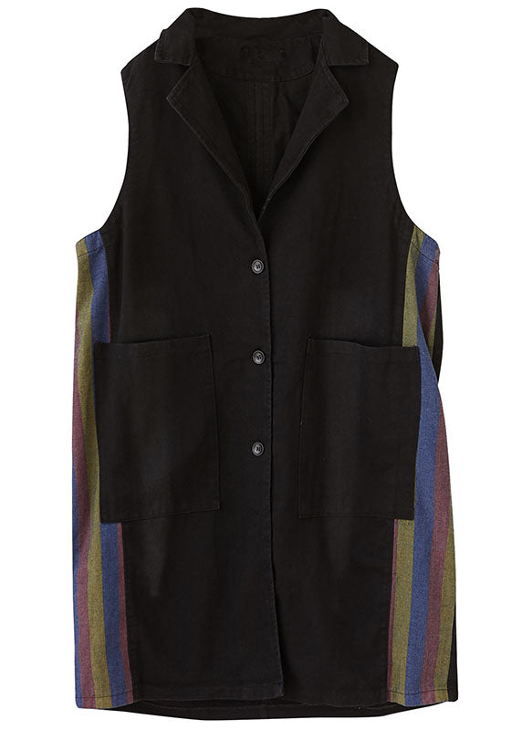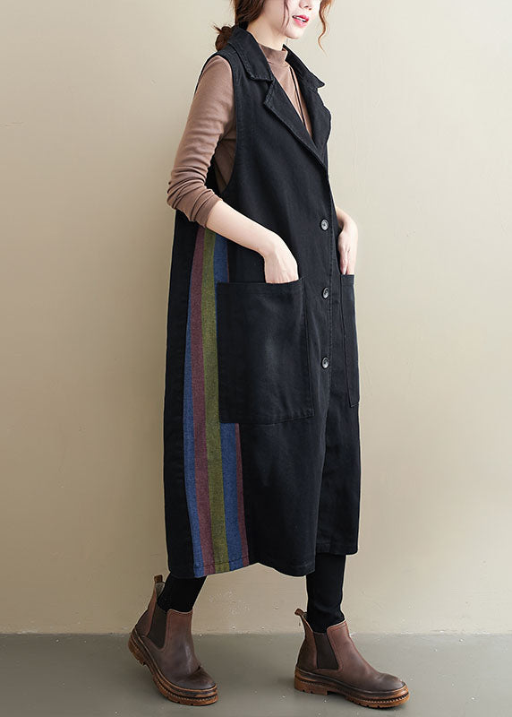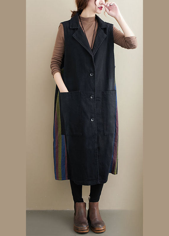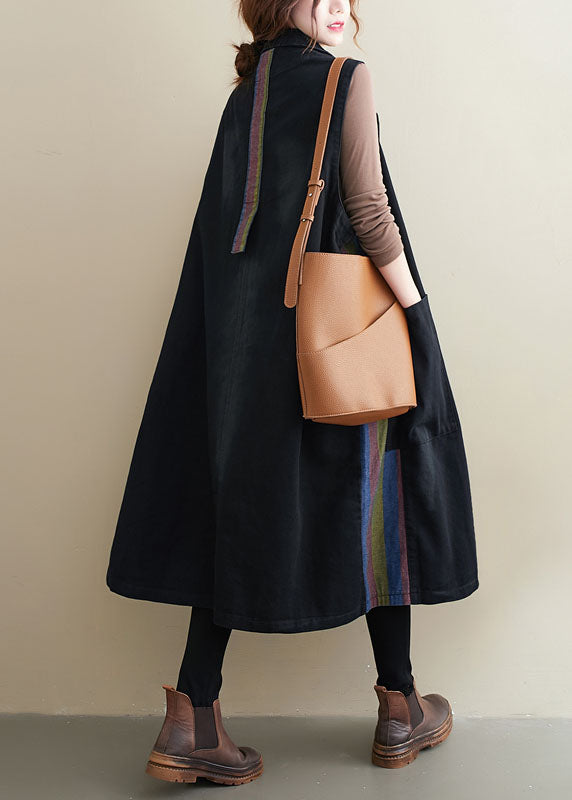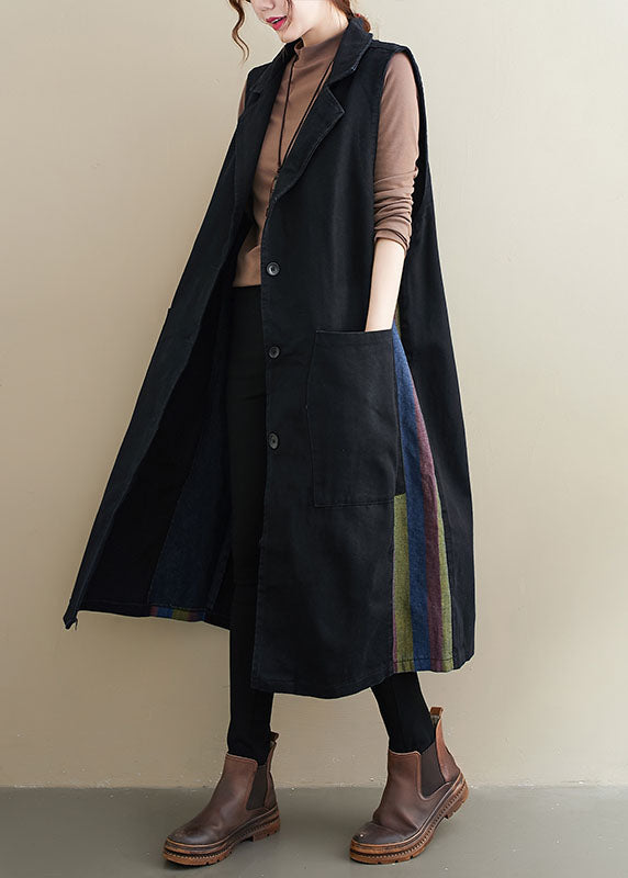 Mode Schwarz Peter Pan Kragen Knopf Taschen Patchwork Herbst Ärmellose Weste