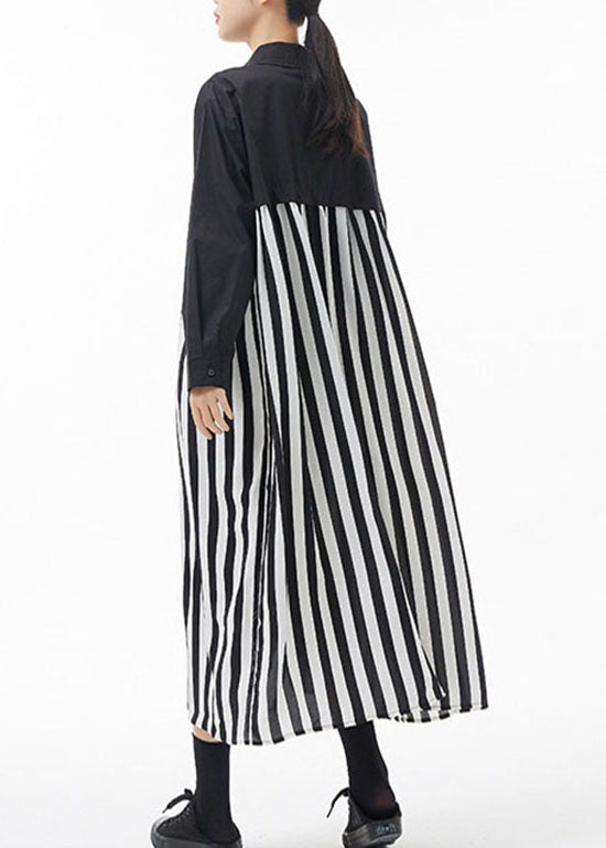 Mode schwarz weiß Gestreiften Peter Pan Kragen Patchwork hemd Kleider