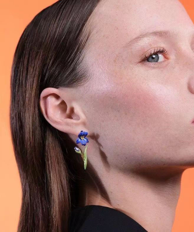 Fashion Blue Alloy Zircon Floral Drop Earrings