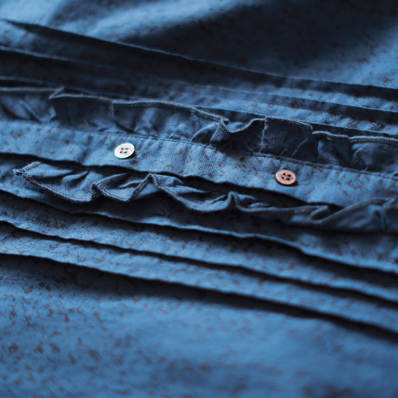 Mode blaue Leinen Etuikleider Locker sitzende Reisehemd Kleid 2018 Rüschen Kragen Baumwolle Kleidung