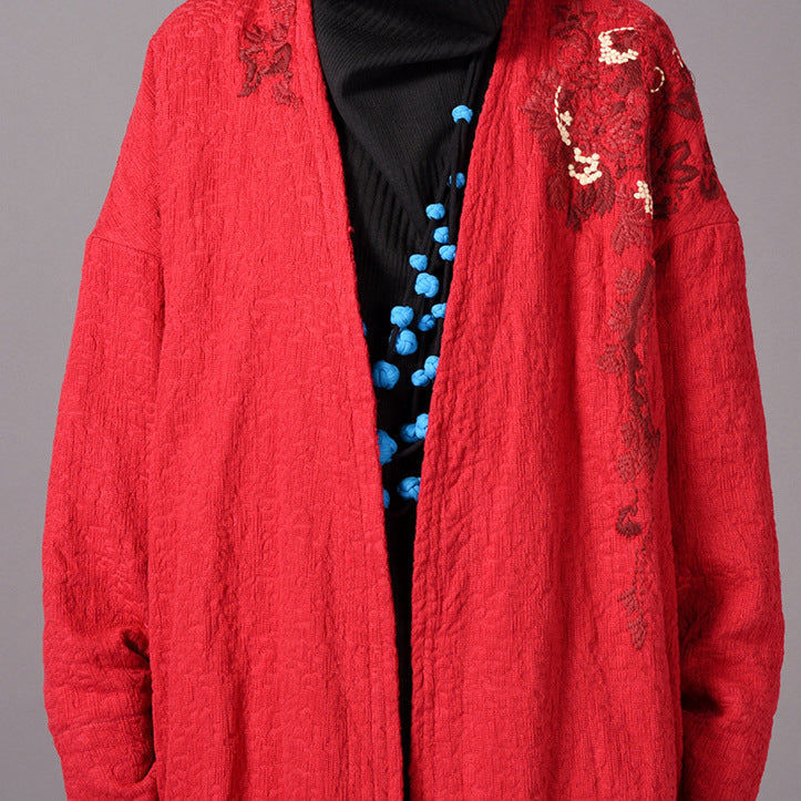 Mode blau maxi mantel übergroßen stickerei baggy graben mantel Neue seite öffnen Mantel