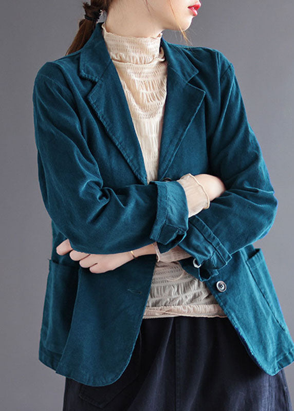 Mode Blau Peter Pan Kragen Taschen Knopf Patchwork Herbst Cord Mantel