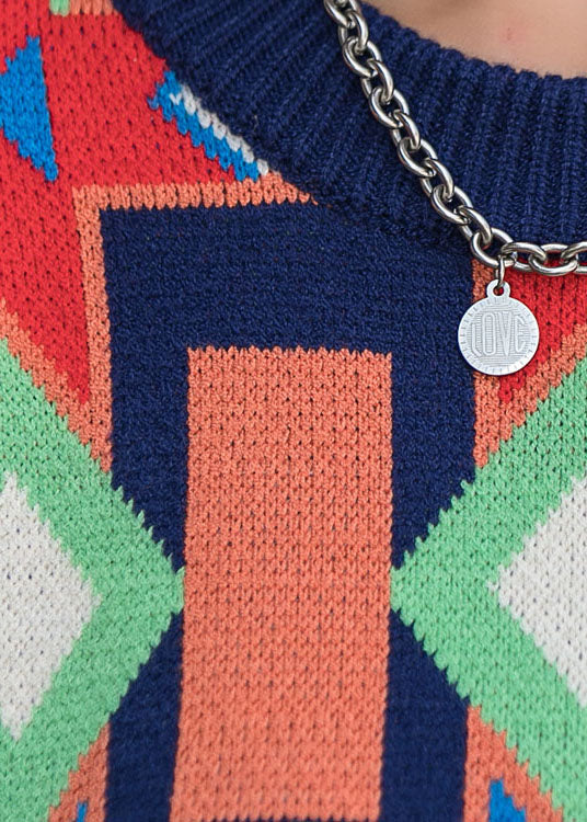 Modische O-Ausschnitt Karomuster Herbst Strick Langarm Kleider