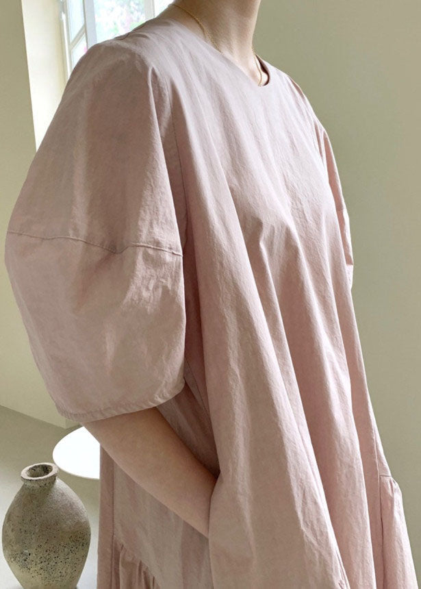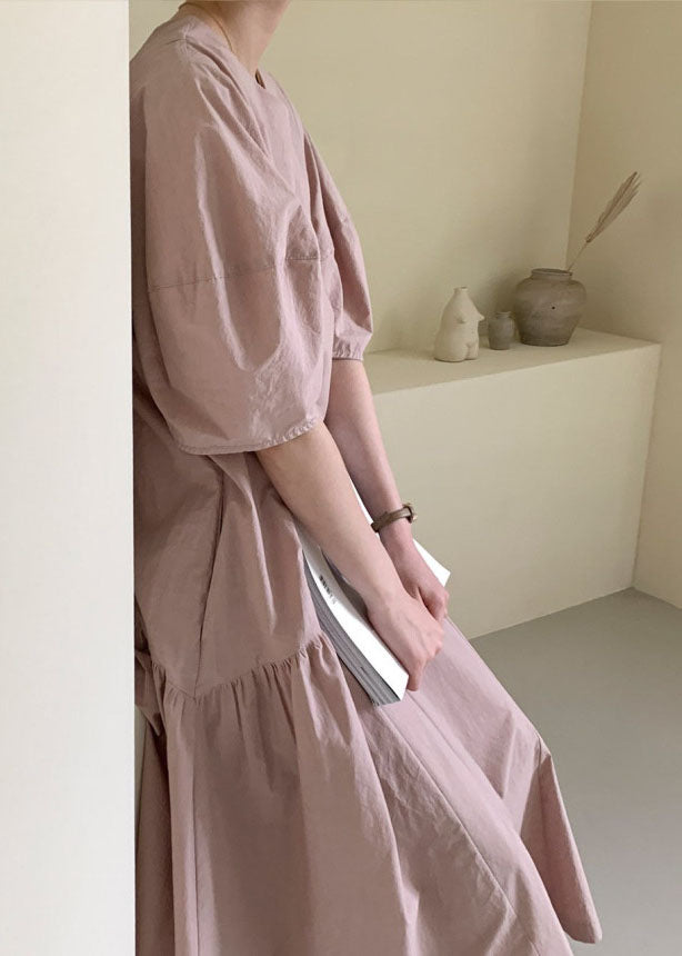 Mode Rosa Puffärmel Patchwork Baumwolle Urlaubskleider Frühling