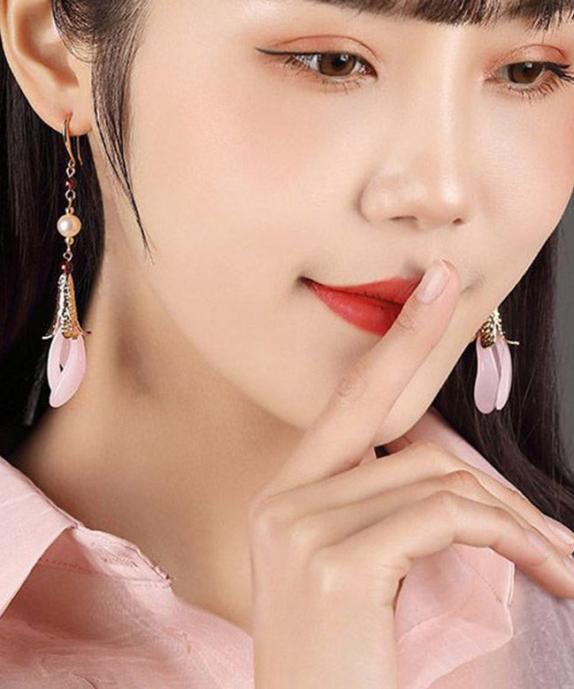 Fashion Pink Sterling Silver Peatl Coloured Glazes Floral Drop Earrings