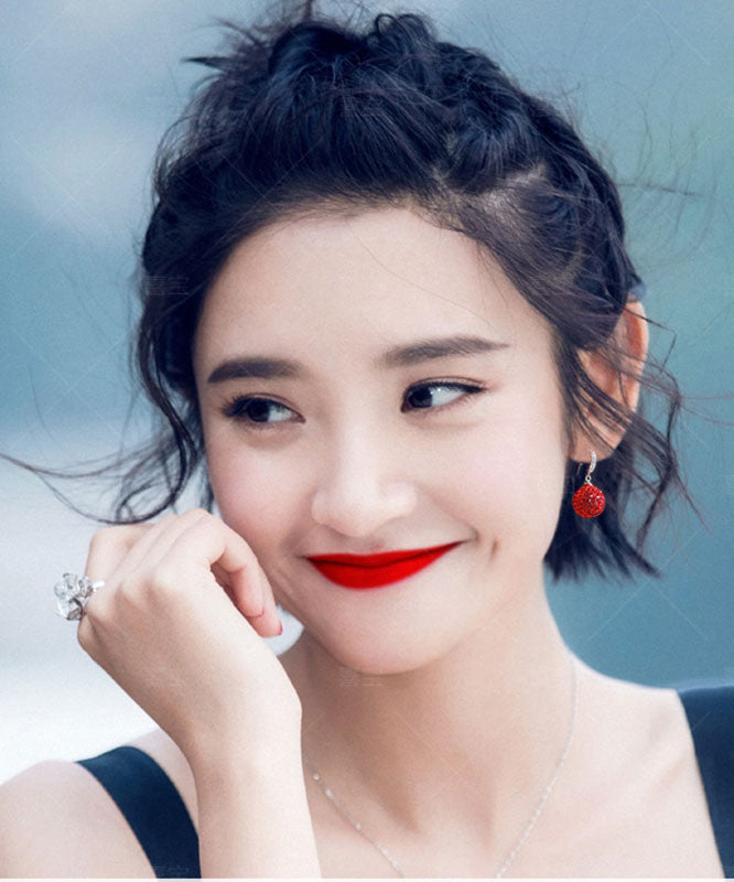 Fashion Red Sterling Silver Zircon Drop Earrings