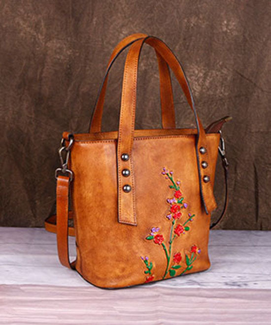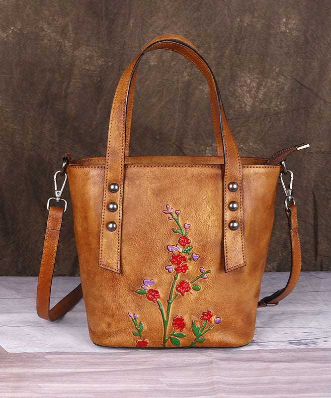 Modische Umhängetasche aus Kalbsleder in Gelb mit Prägung