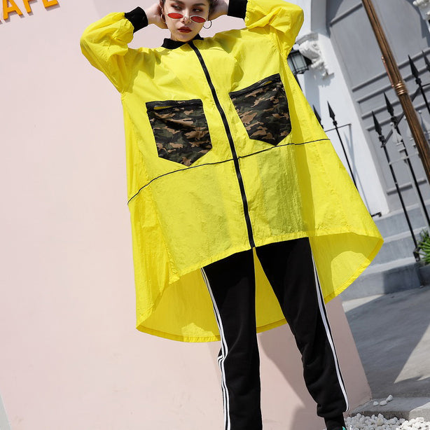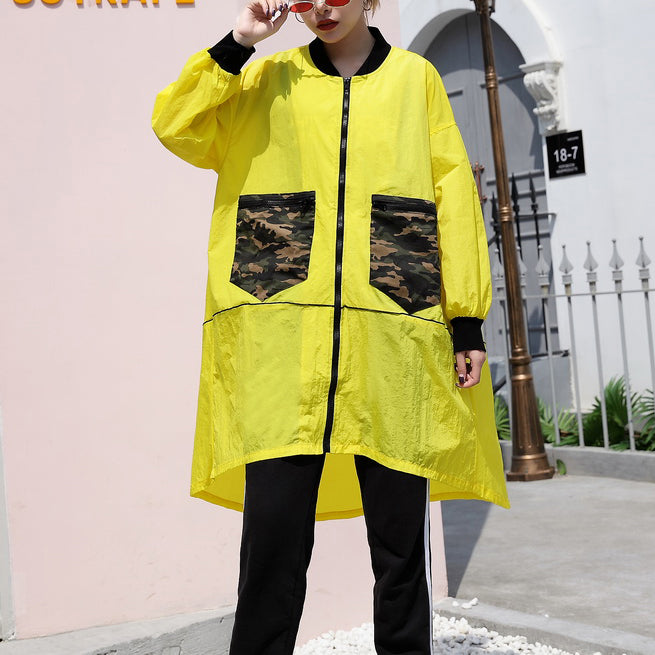 Mode gelb dünne Mantel casual niedrigen hohe strickjacken Mode große taschen jacken