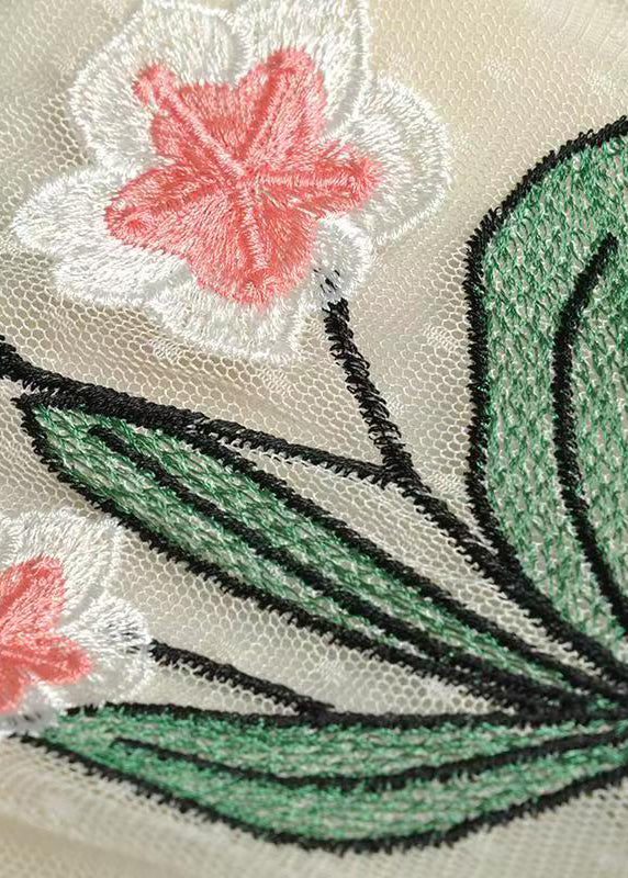 Feines Apricot-Kleid mit quadratischem Kragen und besticktem Patchwork-Tüll