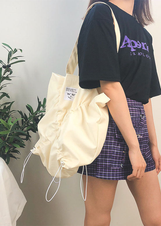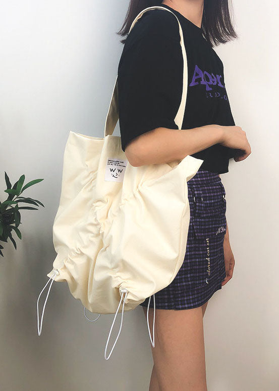 Feine beigefarbene Satchel-Handtasche aus massiver Baumwolle