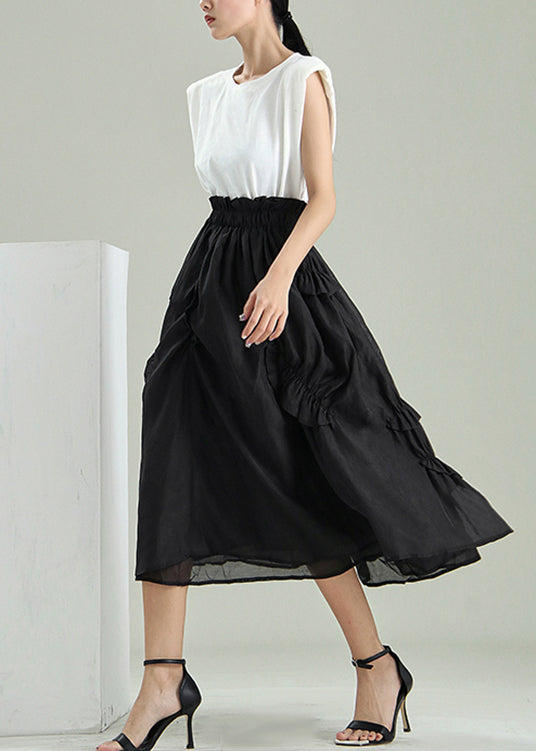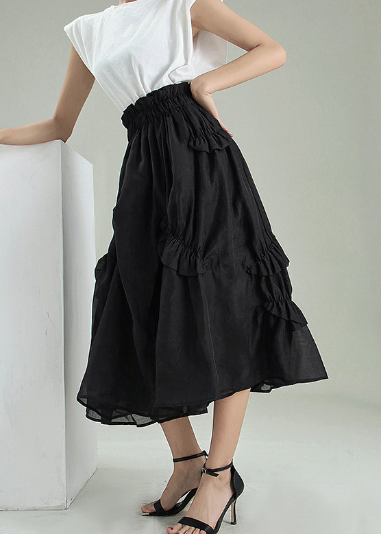 Feine schwarze asymmetrische Falten Tüll Röcke Frühling