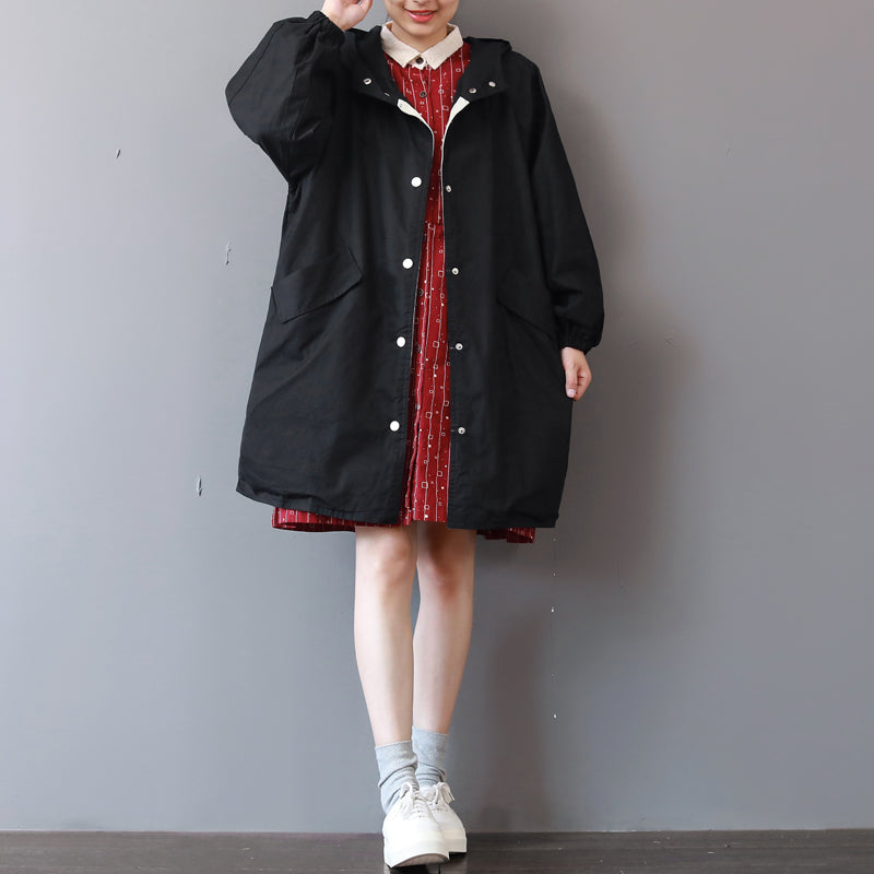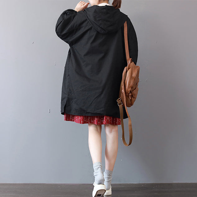 Feiner schwarzer Wintermantel Locker sitzender Kapuzenmantel Boutique große Taschen lange Jacken