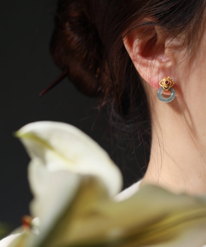 Fine Blue Sterling Silver Overgild Jade Stud Earrings