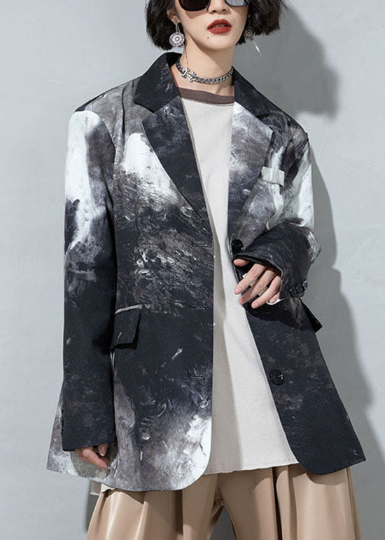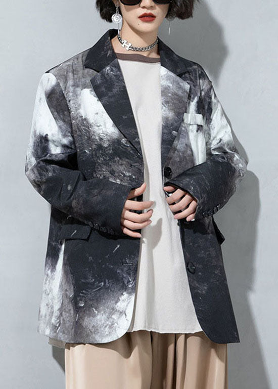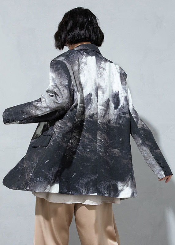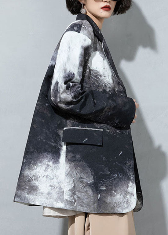 Feine Kaffee Knopf Taschen Peter Pan Kragen Print Mäntel Frühling