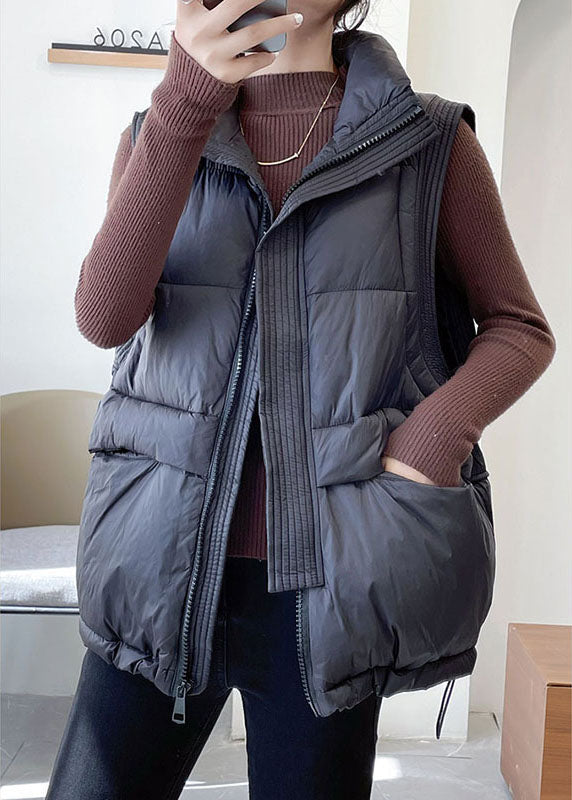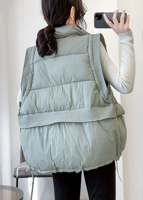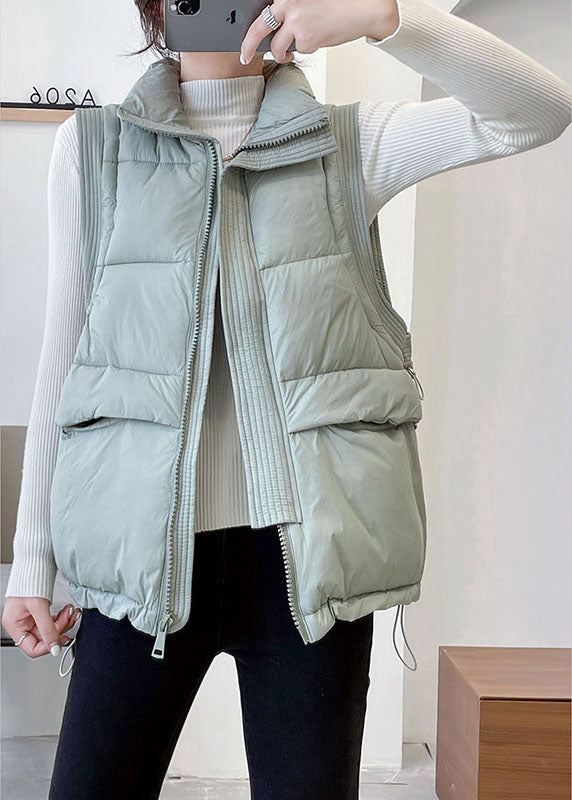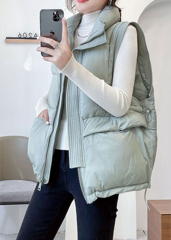 Feine hellblaue ärmellose Winter-Daunenweste mit Stehkragen und Reißverschluss