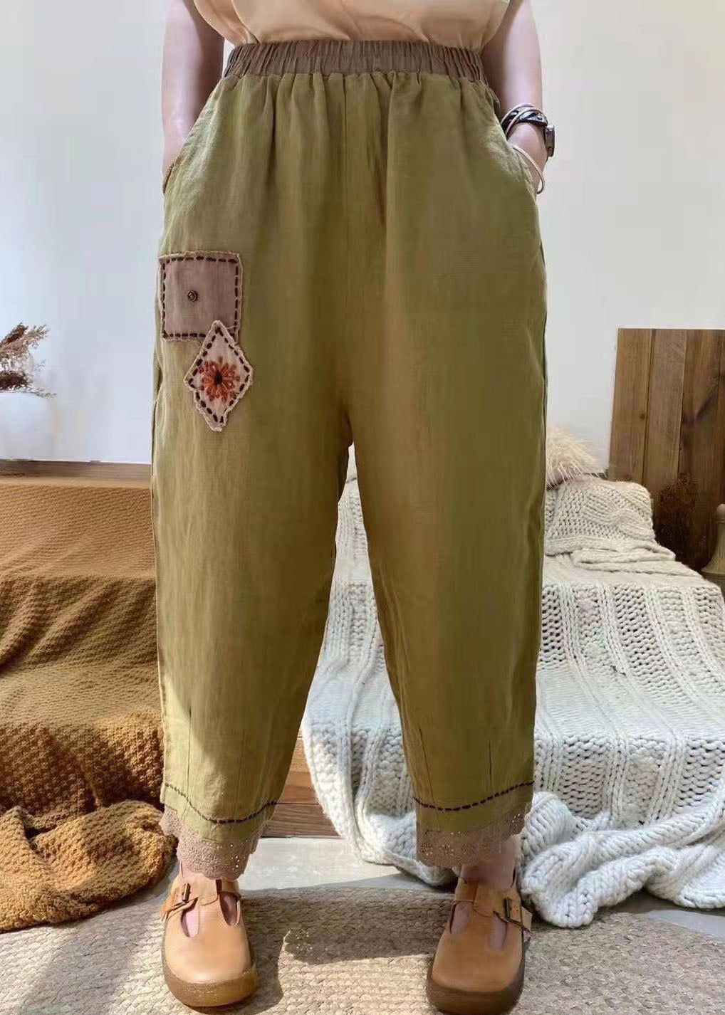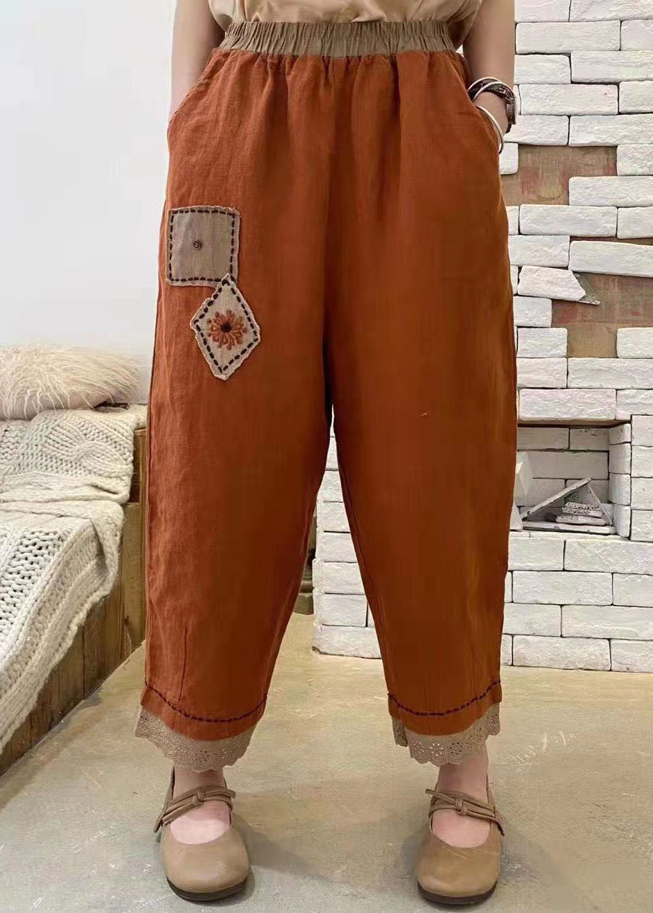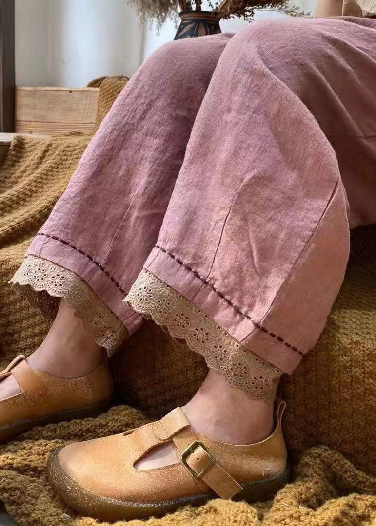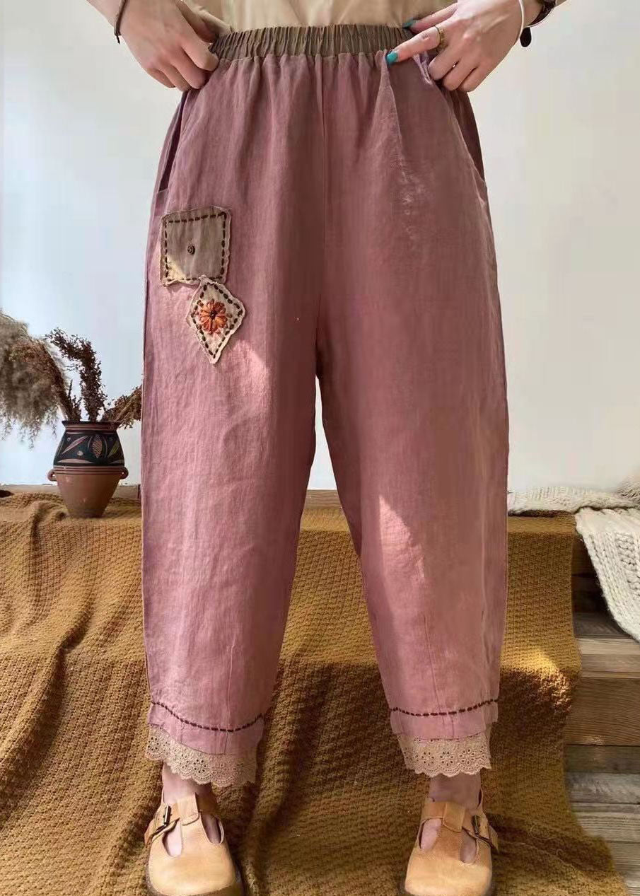 Feine Lila Taschen Patchwork Baumwolle Haremshose Frühling