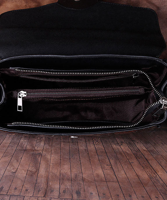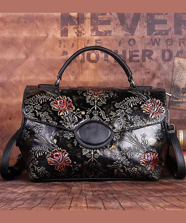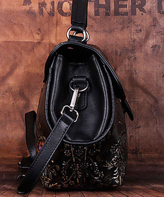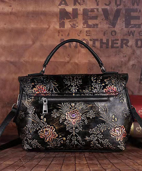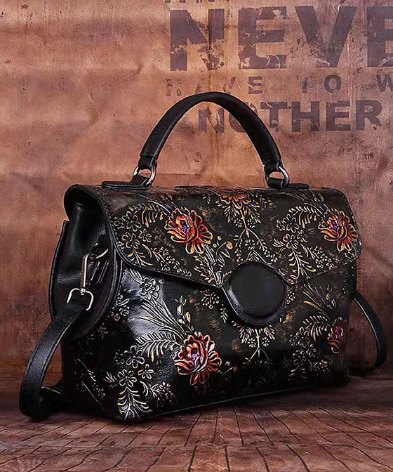 Edle Retro-Umhängetasche aus Kalbsleder mit goldenen Prägungen