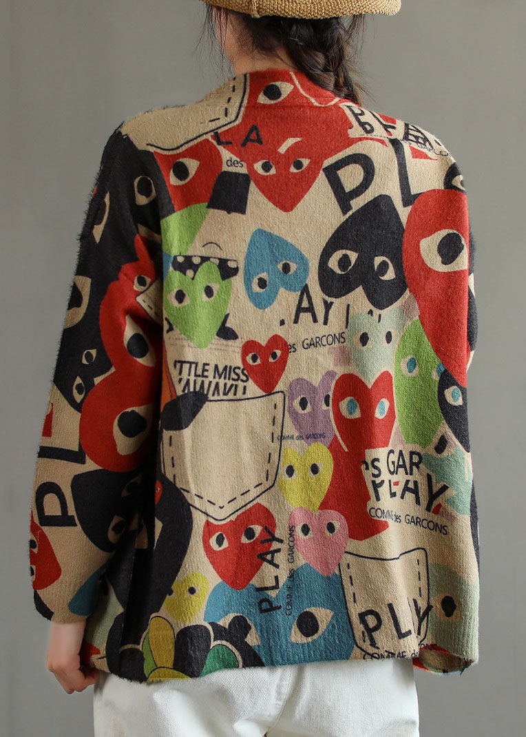 Taillierte Schwarz Rot Oversized Print Nerz Haar Strickjacke Frühling