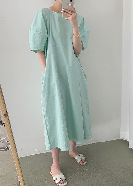 Taillierte grüne Puffärmel Casual Cotton Urlaubskleider Frühling
