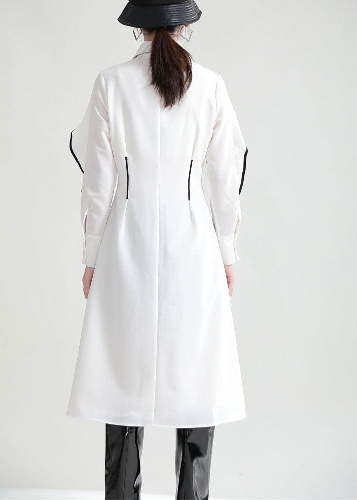 Tailliertes weißes Rüschen-Peter-Pan-Kragen-Hemdkleid Frühling