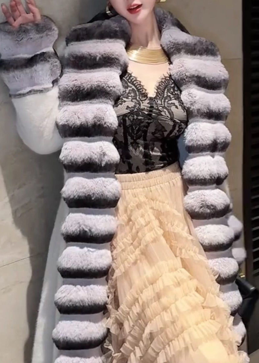 French Beige Peter Pan Collar Totoro Patchwork Leather And Fur Long Coat Winter