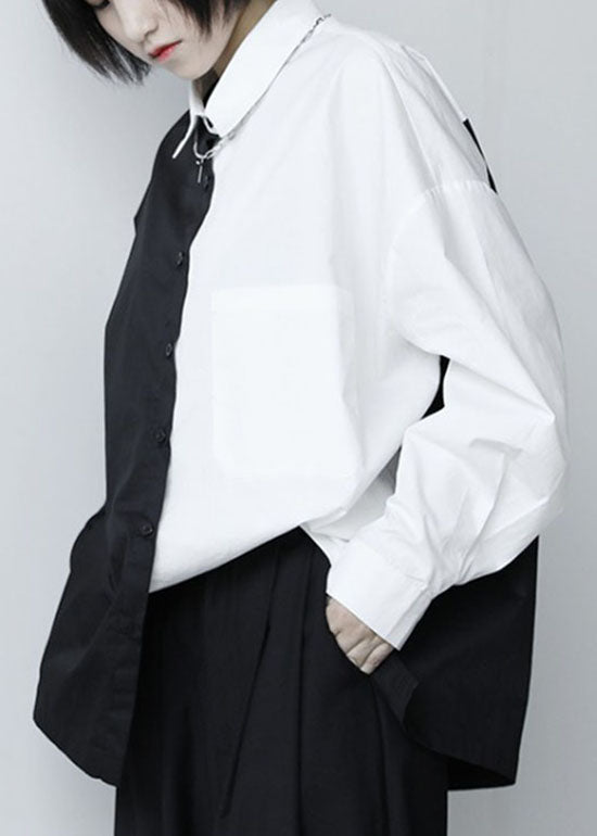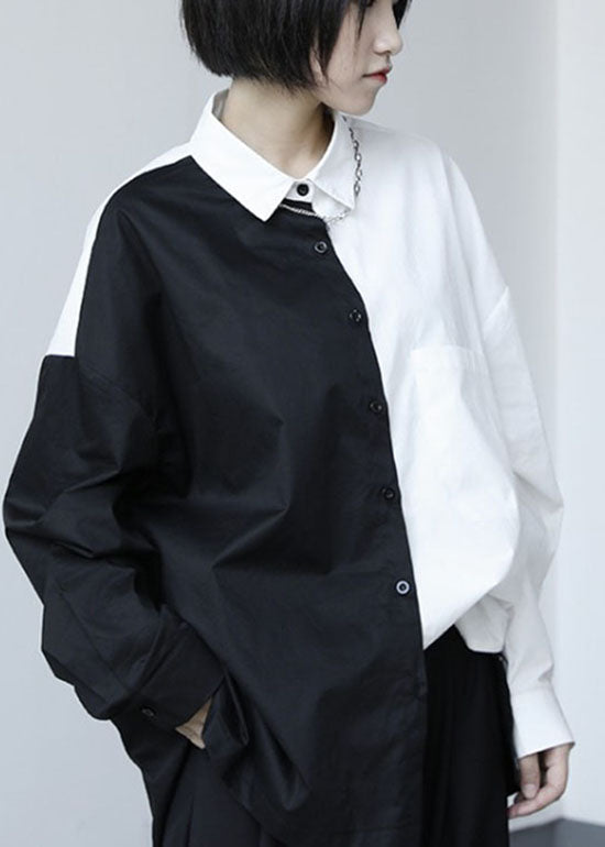Französisches schwarzes Patchwork mit weißen Knöpfen, Herbst-Langarmhemd