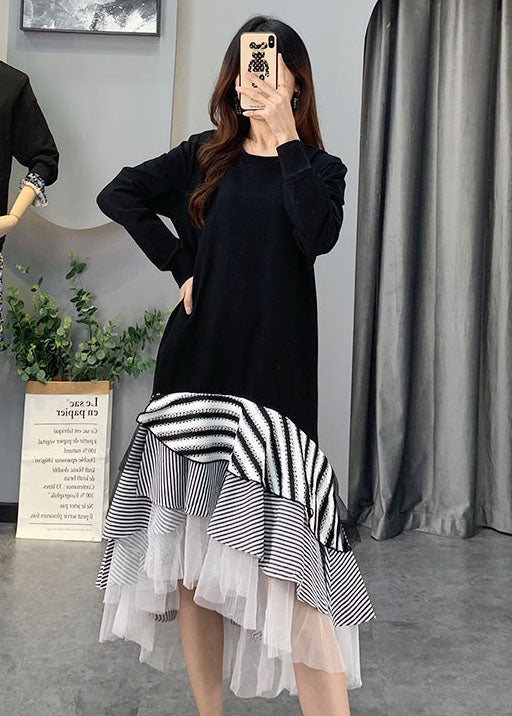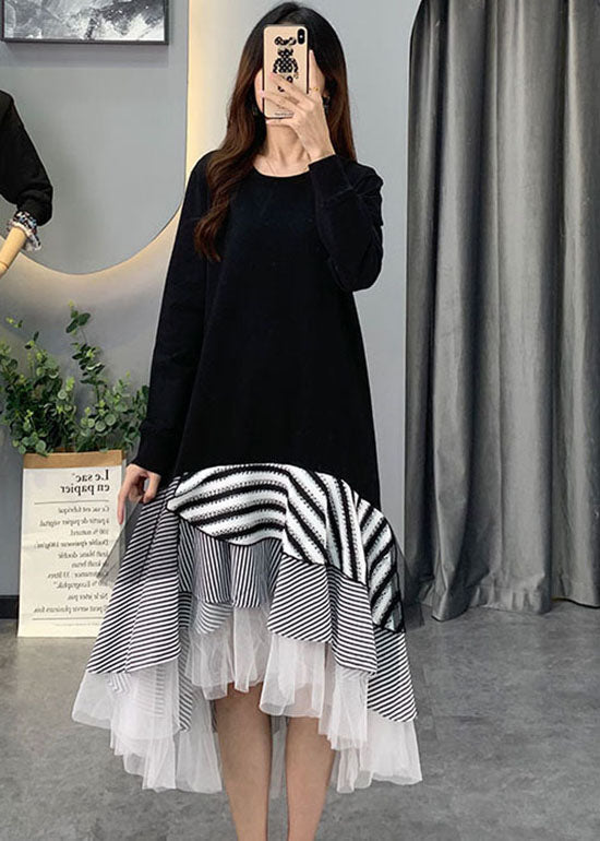 Französisch Schwarz Tüll Gestreiften Patchwork Baumwolle Kleider Frühling