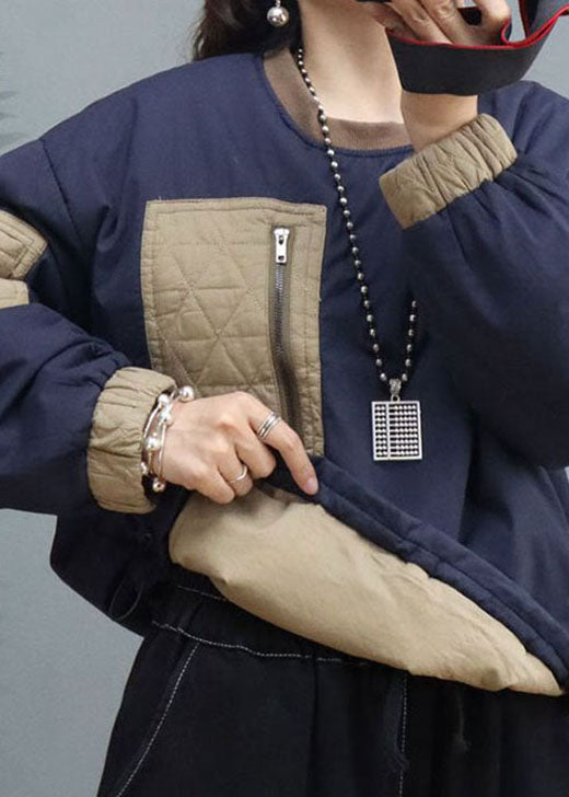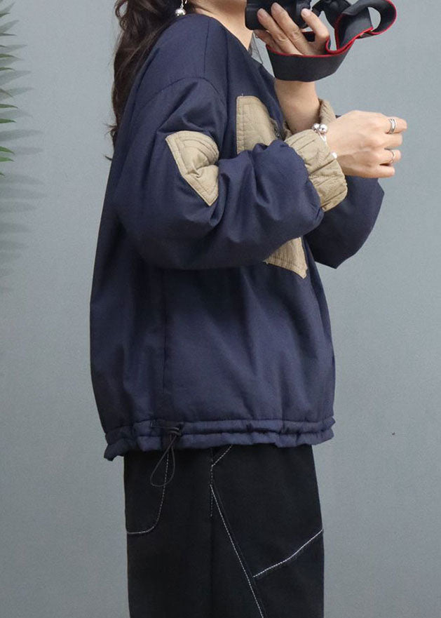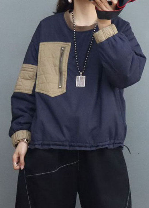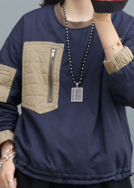 French Blue Pockets Patchwork Feine Baumwolle Gefüllte Sweatshirts Top Winter