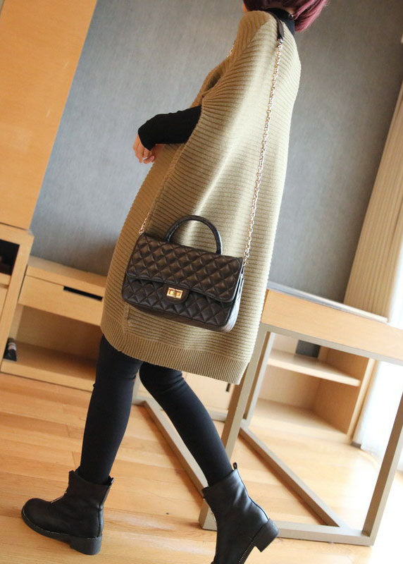 Französische hellgrüne O-Ausschnitt-Mode-Patchwork-Herbst-Strickweste