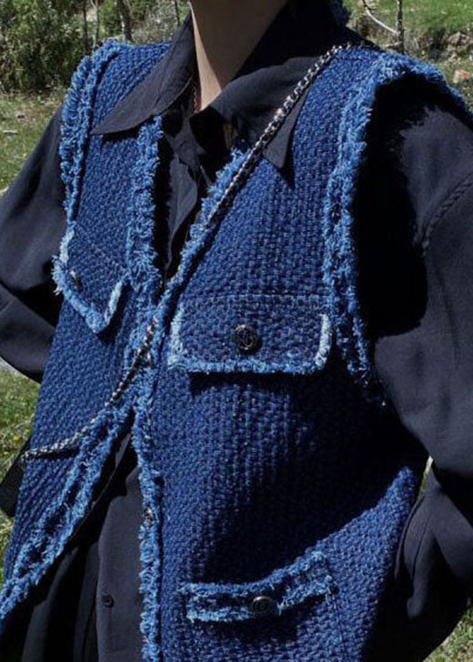 Französische Marine Retro-Weste aus Denim mit V-Ausschnitt und Taschen