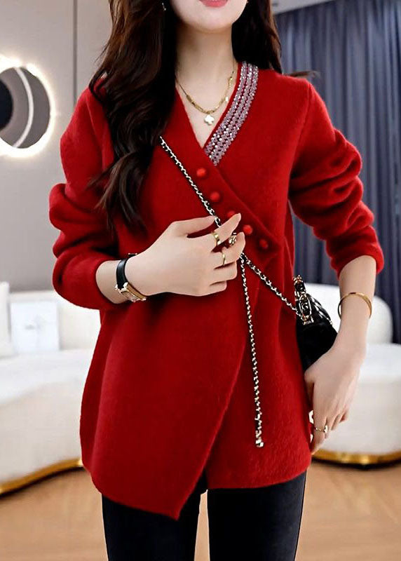 Französisch Lila V-ausschnitt Asymmetrische Design Stricken Lose