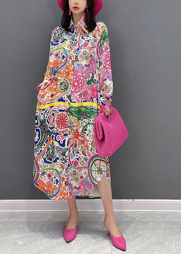 Französisches rotes Hemdkleid mit Peter-Pan-Kragen und langen Ärmeln