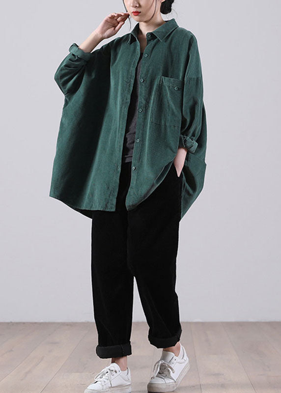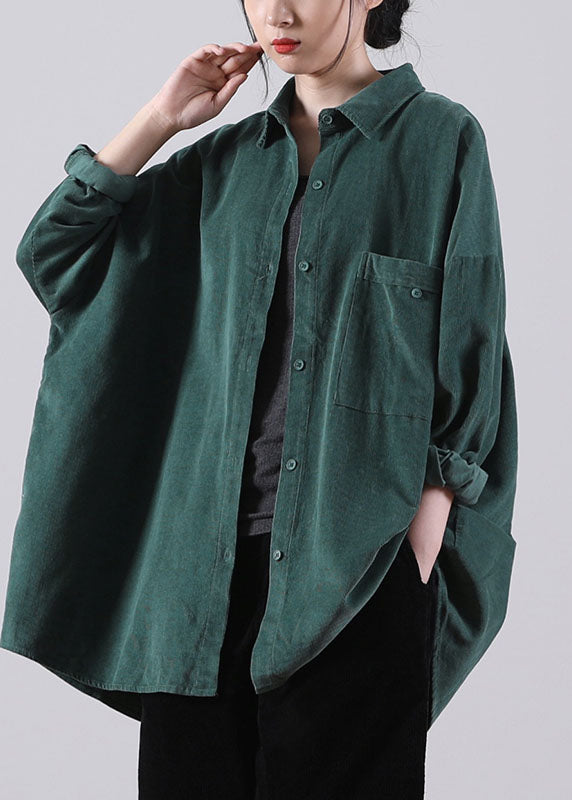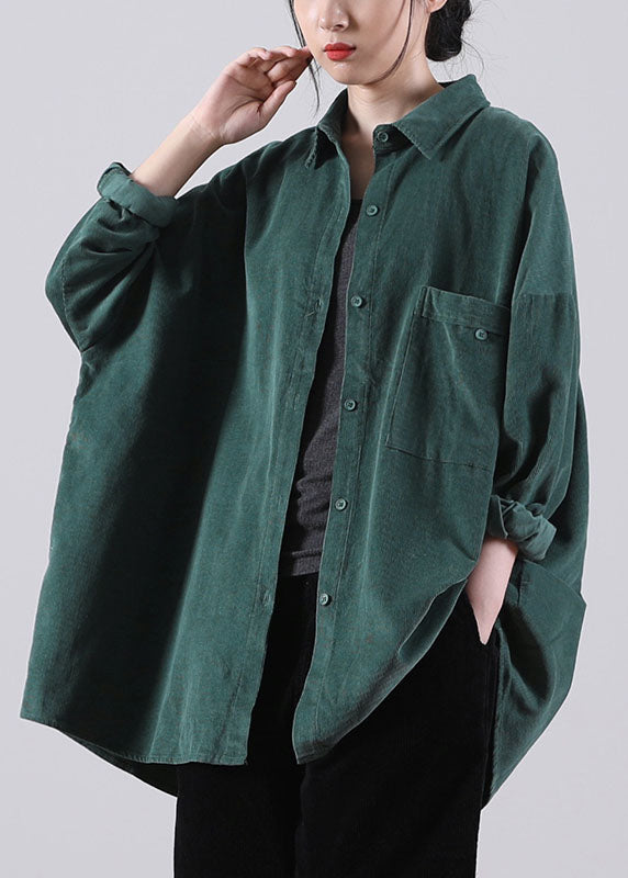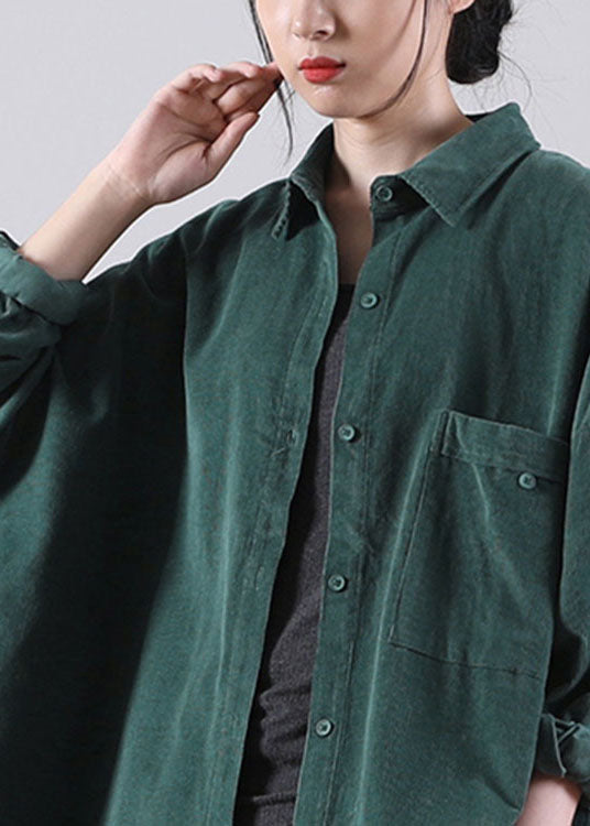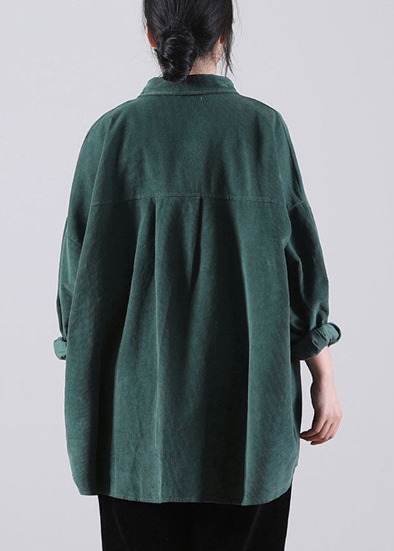 French Tea Grün Peter Pan Kragen Taschen Knopf Herbst Top Langarm