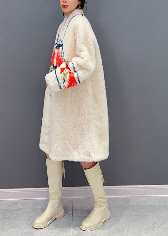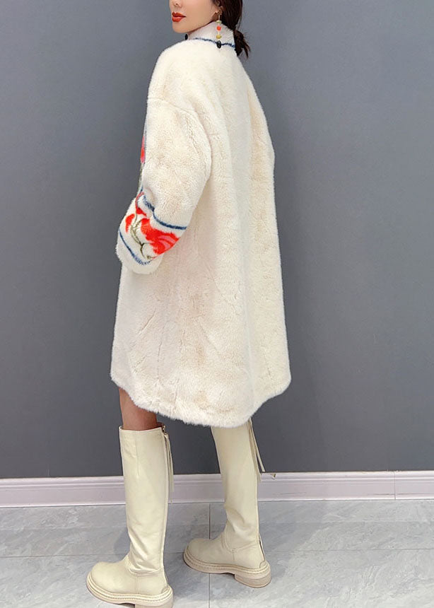 Französischer weißer V-Ausschnitt Orientalischer Knopfdruck Flauschiger Pelzmantel Winter